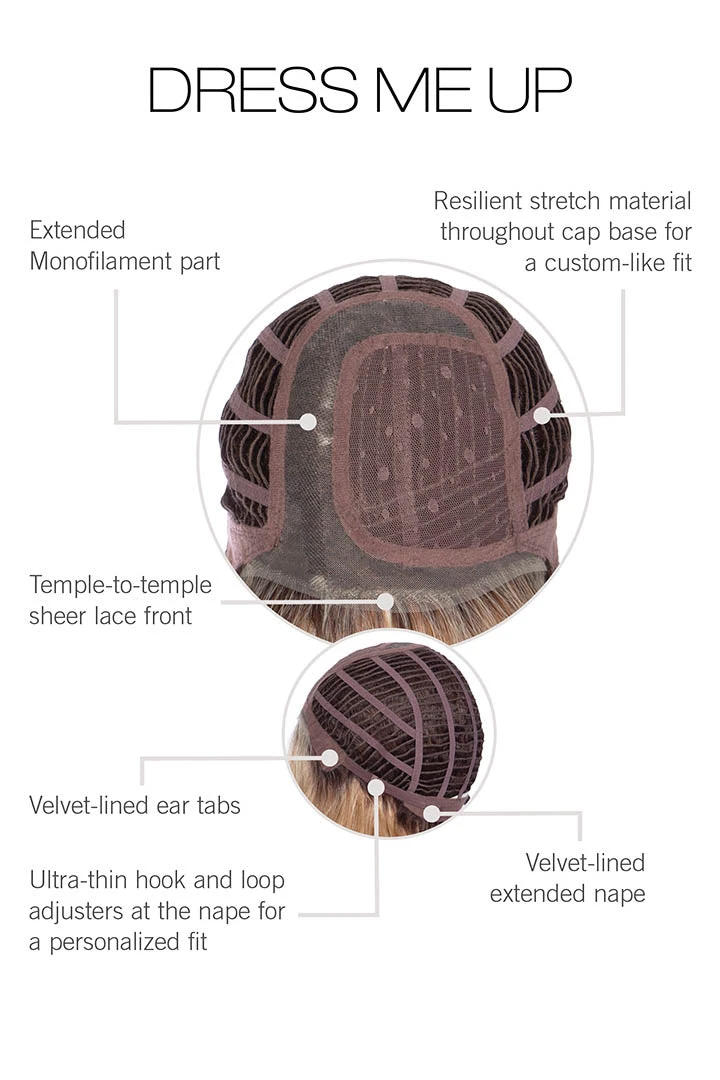 Itโs todayโs popular, soft tumbled wave texture professionally cut into a blunt, long bob. This unstructured, natural wave is in high demand, understandably so. With loose movement throughout, Dress Me Up is stylish but not over-styled. It is undeniably flattering whether dressed up or down. Meet your new wig wardrobe staple!