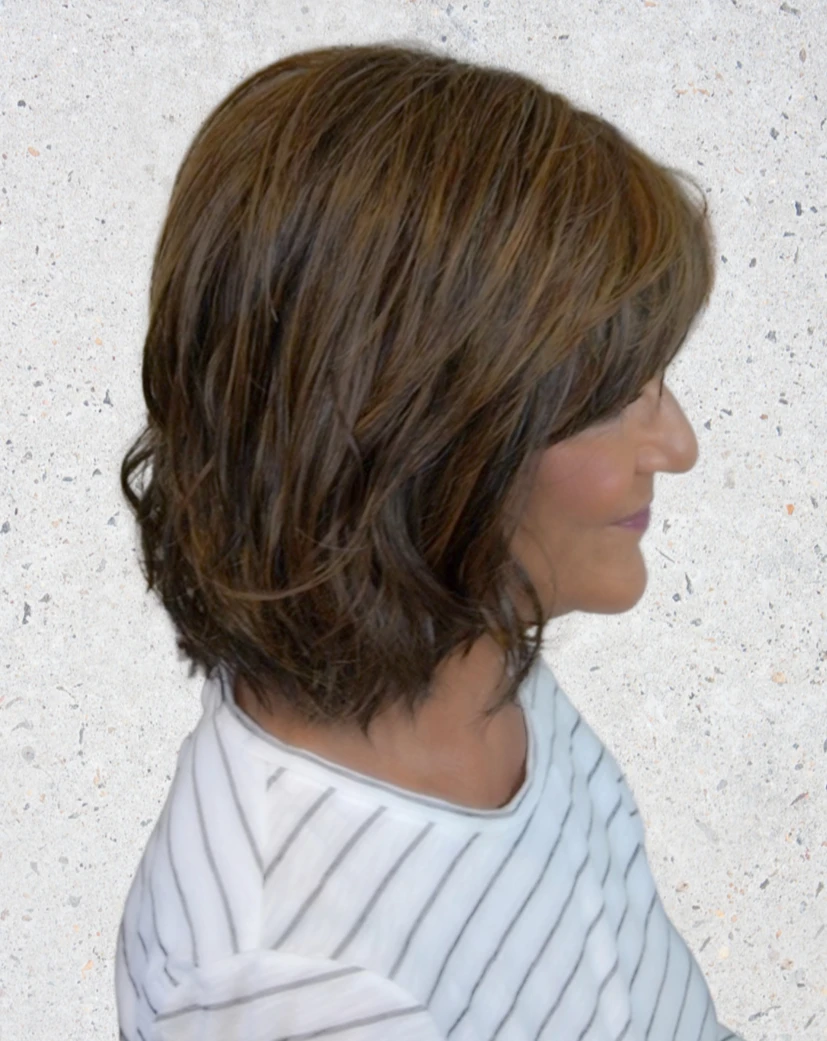 Blended multi-textures and contoured layering give you lots of volume without any bulk for an incredibly lightweight feel. The wavy sides perfectly frame and narrow the face.