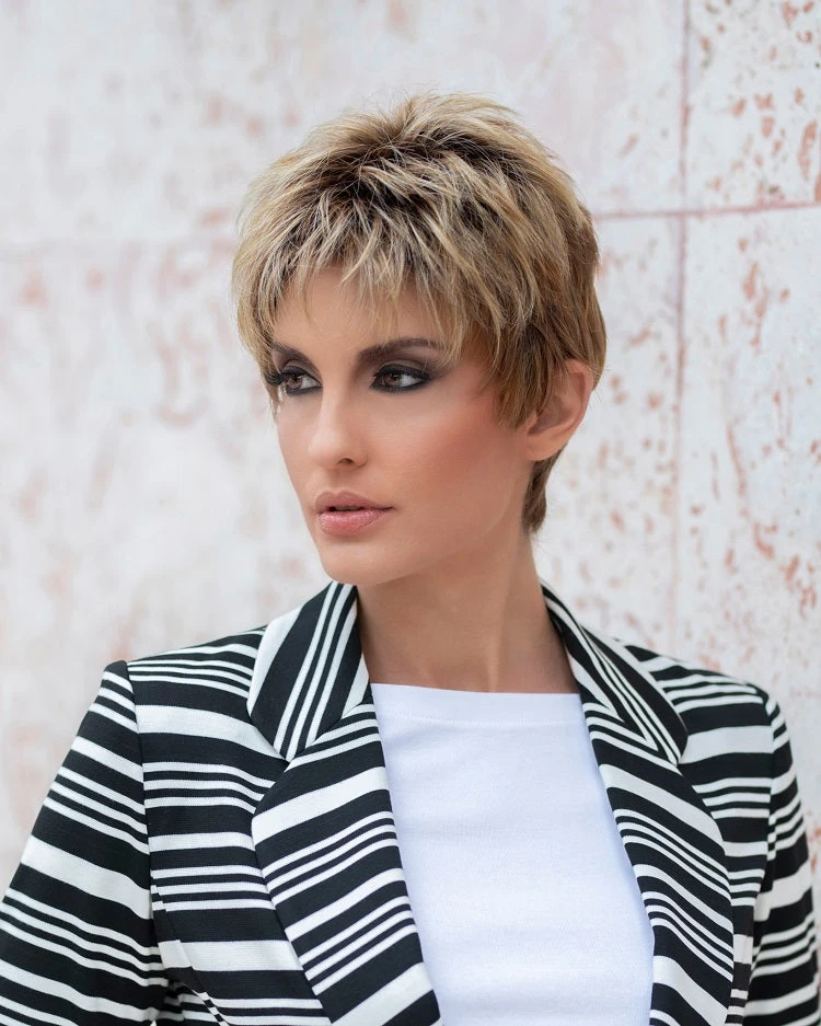 A sophisticated, boyish cut designed with spiky layers and featuring a breathable Open Top construction, Penelope offers a fun, flirty alternative to the traditional pixie. Style it up or comb it down, this look offers versatile styling at its best.ย ย