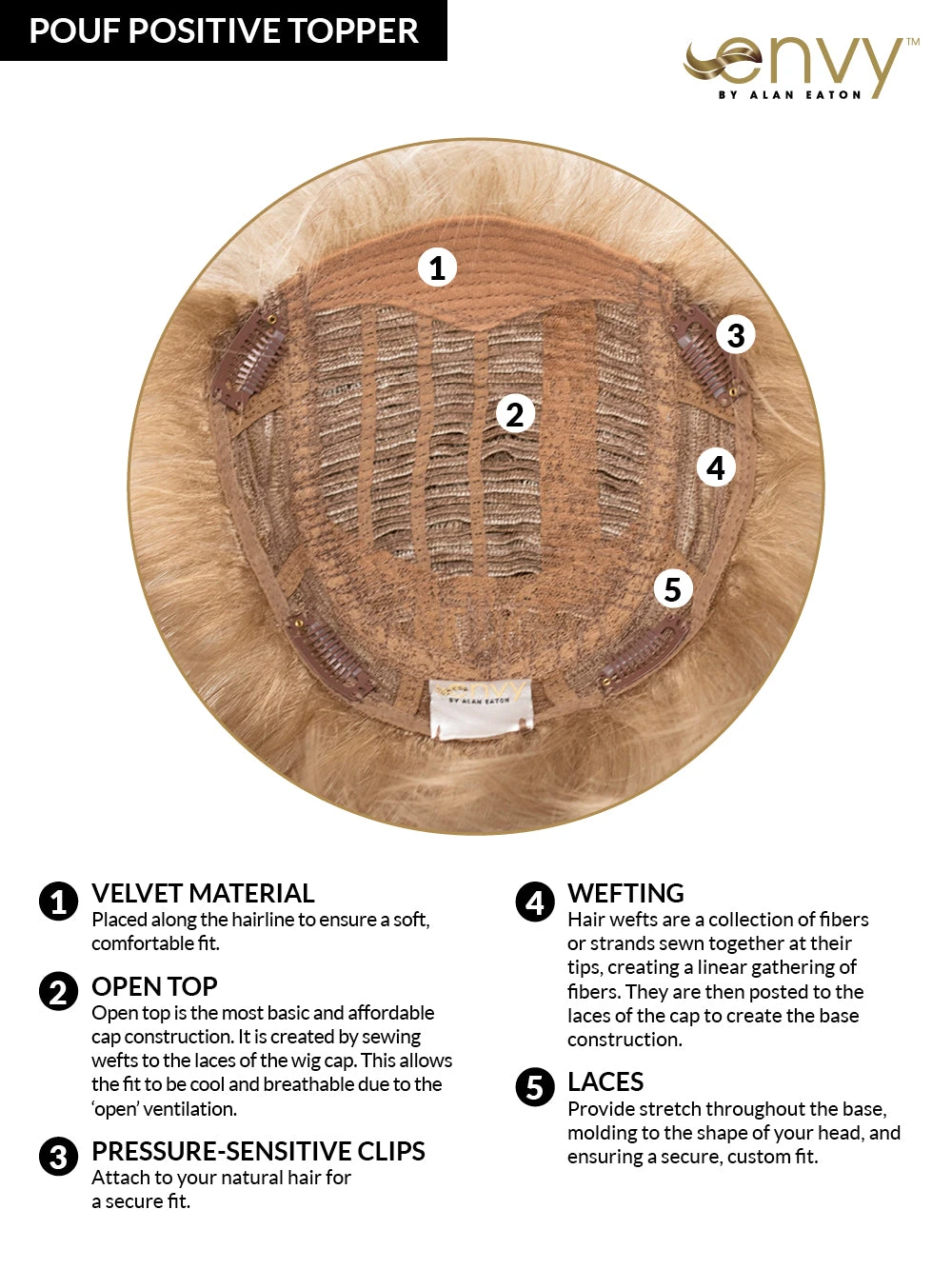 Pouf Positive is the perfect topper to add length and volume to any pixie! The open-top construction makes it a breeze to do so.