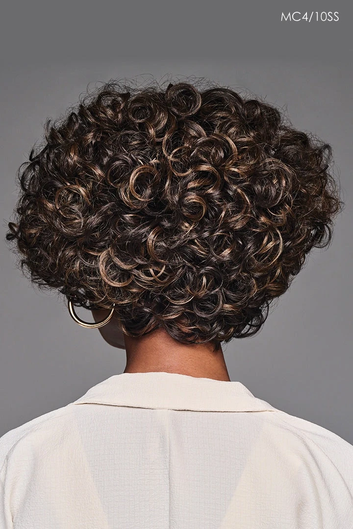 Voluminous spiral curls cropped in a unique shape makes TIERRA the kind of charismatic, center-of-attention style destined to be your new signature look. Stacked fullness at the crown and sides tapers at the nape creating a chic V-shape thatโs weighted above the ears.